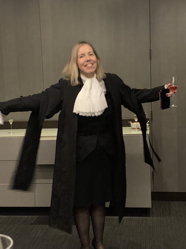 One of the judges (all of whom are fully robed) calls the new KC up to take a seat ‘in the bar’. This means the KC now has the privilege of being able to sit within the inner bar of the courtroom.